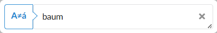 Neben dem Feld für den Suchbegriff kann wie bei der Volltextsuche eingestellt werden, ob die Suche Groß- und Kleinschreibung beachten soll und ob Umlaute exakt matchen sollen.